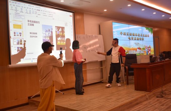 本次培训特别邀请了电商领域的专家和资深从业者作为讲师。培训伊始,讲师以深入浅出的方式,为学员们介绍了新媒体技术在各领域的广泛应用,对各大热门视频平台的特点和用户群体以及新媒体营销的基本原理与策略进行分析,并结合大流量博主典型案例拆解账号起号、文案创作及分镜脚本,还邀请学员上台演示视频拍摄运镜技巧,学员们认真聆听,不时记录要点。