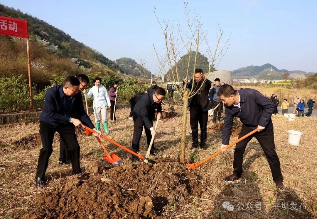 为深入学习贯彻党的二十大精神、习近平总书记视察贵州重要讲话精神和对贵州工作重要指示批示精神,牢固树立“绿水青山就是金山银山”的生态理念,大力抓好生态文明建设,进一步推动平坝区全民义务植树活动深入开展,2月28日,平坝区在天龙镇天龙村传习路义务植树点同步开展义务植树活动。区委书记王金源,区委副书记、区长王元鹏,区人大常委会主任汪波,区政协主席陈先锋,区委副书记、区直机关工委书记全优,区委常委,区人大常委会、区政府、区政协领导班子成员和党组成员,区人武部、区人民法院、区人民检察院主要领导,黔中新区县级干部,区直有关部门主要负责同志,区人武部、区民兵预备役部队和区林业局全体干部职工,天龙镇全体干部职工及村支“两委”人员参加植树活动。