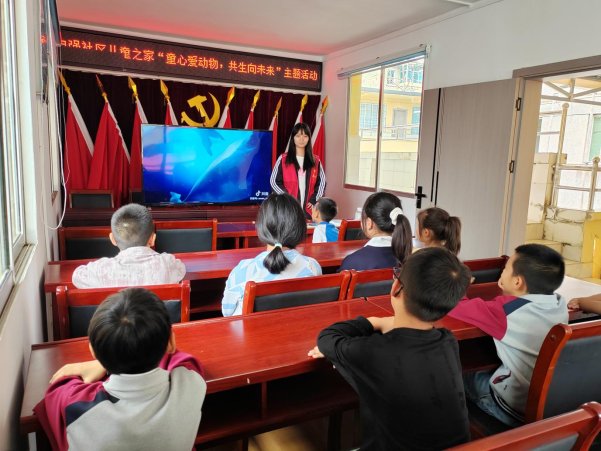 活动前志愿者老师提出一个小问题——我国的濒危动物有哪些?孩子们争相回答,有的脱口而出“大熊猫”;有的深思熟虑之后慎重的说“扬子鳄”;有的耍宝的说“恐龙”。志愿者老师没有否定孩子们的答案也没有肯定孩子们的答案,只是说活动结束之后再问一遍这个问题。在活动中志愿者老师首先用生动形象的语言向孩子们讲解了濒危动物的概念、生存现状以及濒临灭绝的原因;然后向孩子们区分开了极危、濒危、易危、近危这“四危”,接着通过短视频的形式向孩子们展示了可爱的、凶猛的、美丽的濒危动物,让孩子们对这些珍贵物种有更直观的了解。